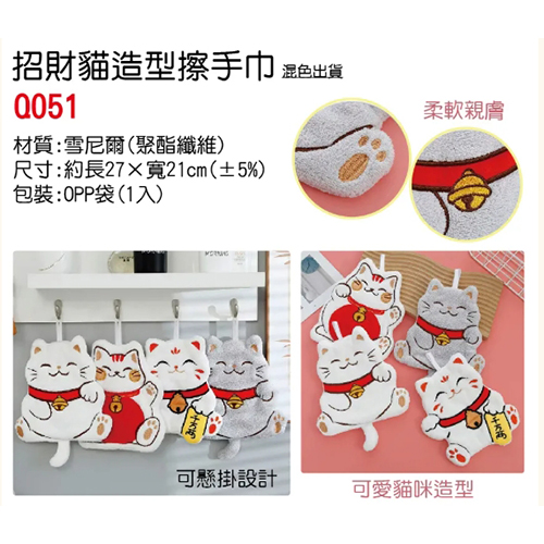 商品名稱 : 招財猫造型擦手巾