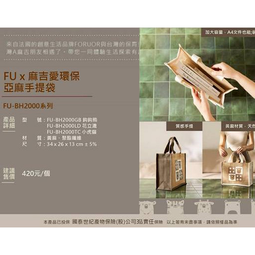 商品名稱 : 麻吉愛環保亞麻手提袋