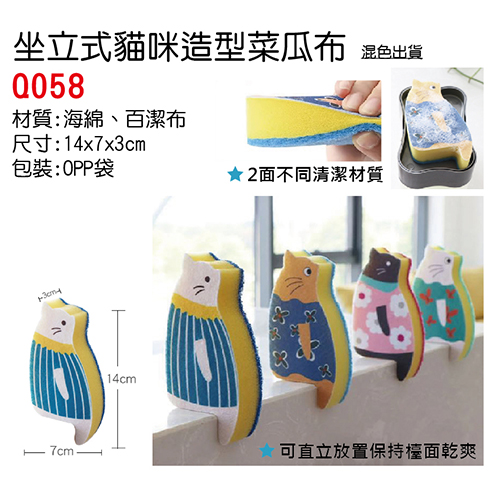 商品名稱 : 坐立式猫咪造型菜瓜布 商品編號 : 127-Q058 商品材質 : 海綿、百潔布 商品尺寸 : 14x7x3cm 商品包装 : OPP袋 商品特色 : ‧螢幕顯示各有差異,實際顏色以實品為主 ‧商品圖片僅供參考,實際規格以出貨實品為主 商品介紹 : ‧歡迎洽詢電話 : 04-7756767