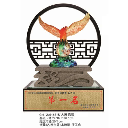 商品名稱 : 大展鴻鴻圖 商品編號 : 411-GH-2AH651S 產品尺寸 : 24*10.5*30.5cm 銘版尺寸 : 20*5cm 產品材質 : [大]博古架+水琉璃+手工盒 商品特色 : ‧螢幕顯示各有差異,實際顏色以實品為主 ‧商品圖片僅供參考,實際規格以出貨實品為主 商品介紹 : ‧歡迎洽詢電話 : 04-7756767