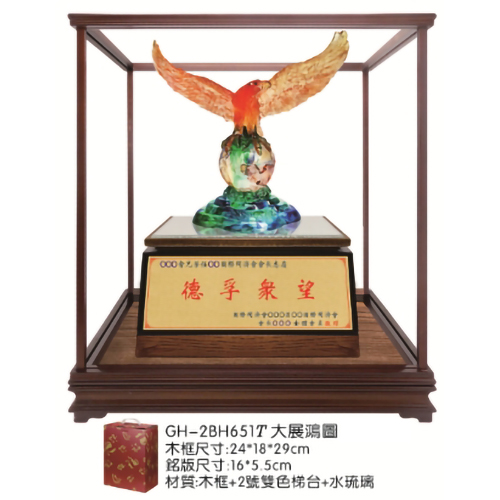 商品名稱 : 大展鴻圖 商品編號 : 411-GH-2BH6517 木框尺寸 : 24*18*29cm 銘版尺寸 : 16*5.5cm 商品材質 : 木框+2號雙色梯台+水琉璃 商品特色 : ‧螢幕顯示各有差異,實際顏色以實品為主 ‧商品圖片僅供參考,實際規格以出貨實品為主 商品介紹 : ‧歡迎洽詢電話 : 04-7756767