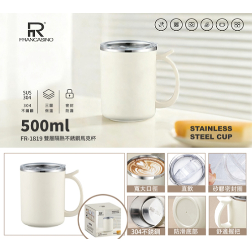 商品名稱 : 雙層隔熱不銹鋼馬克杯
